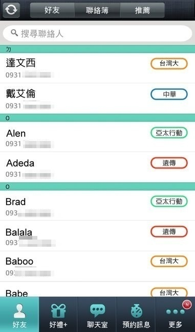 。電信業者別– 這乍聽下來讓人霧煞煞的功能,其實就是在好友清單旁的”聯絡簿”中。