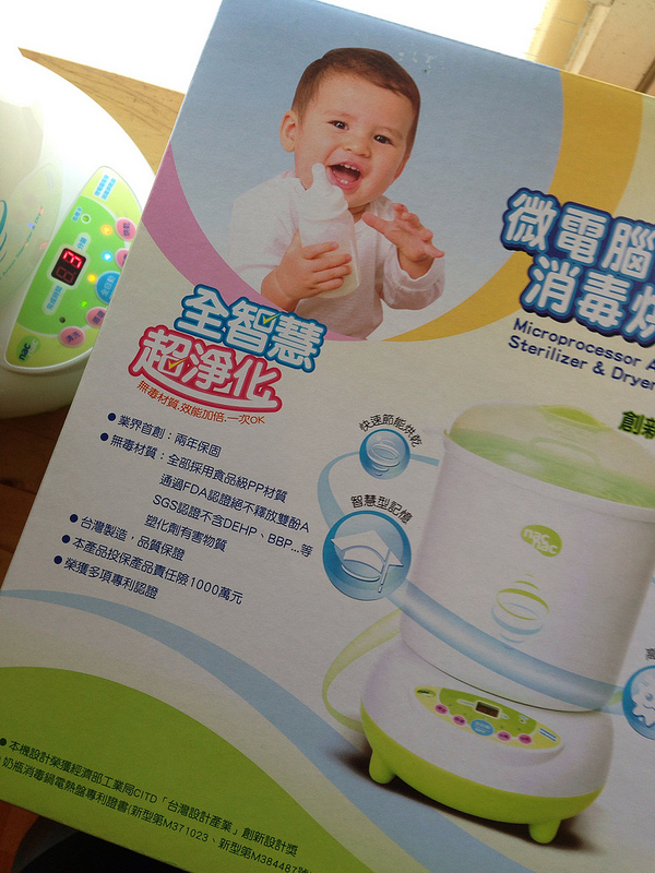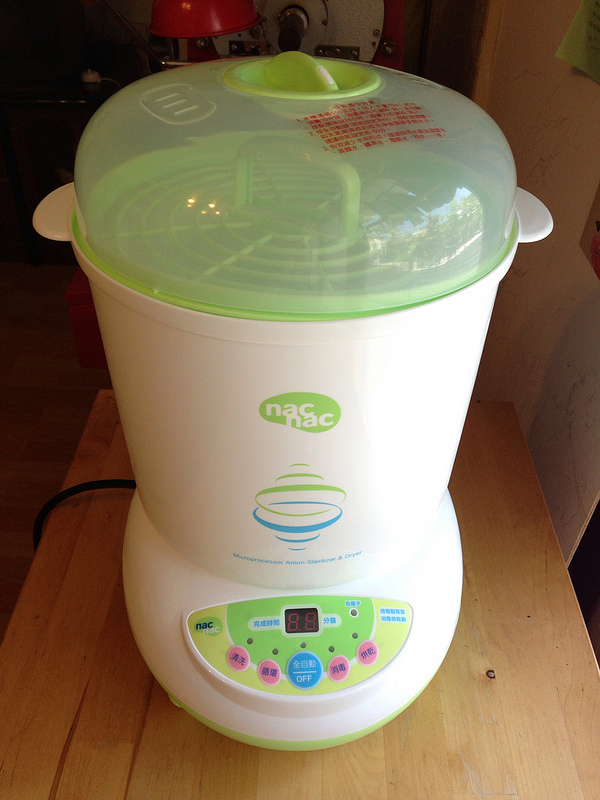 臉書上朋友們一致推薦這台nac nac蒸氣消毒奶瓶烘乾鍋,大叔立馬手刀在PCHOME購物下標訂購,24小時到貨真的有夠迅速,中午結帳傍晚就出現在咱們家裡,這下子寶寶吃完的奶瓶就不用在那裡用熱水燙了又燙了。