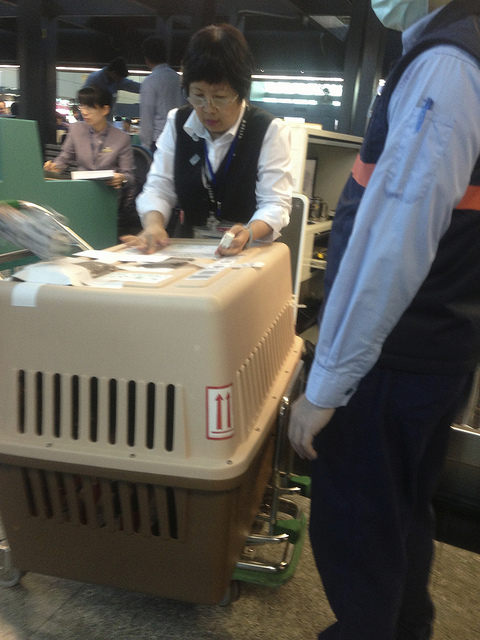 天!連我們家的狗都因為今天要上飛機,從好幾天前就訓練它適應狗籠,剛剛出門前還帶他去散了兩次步讓他尿尿,也不敢讓他喝太多的水….