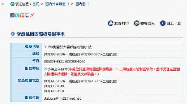 所以我們要了在機場外交部的電話,(03)398-2629(一期航廈) (03)398-5805(二期航廈) (03)383-4849 (03)393-2628 試著跟他們溝通,