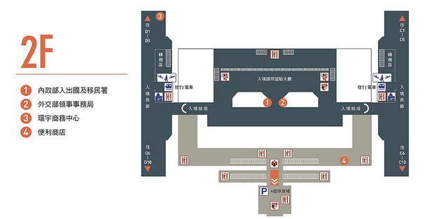 外交部人員:「我們的辦理處是在『入境證照查驗大廳』」(位置2,還在管制範圍喔)