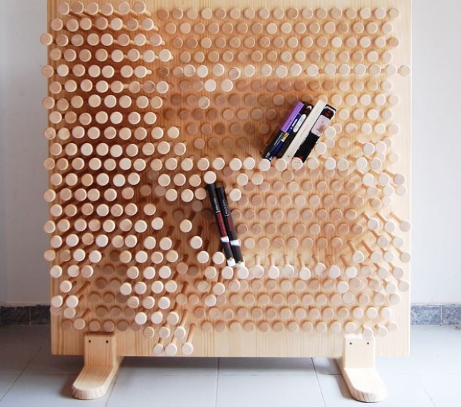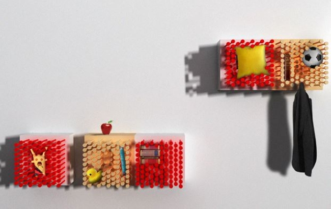 普通置物架都是一個平台或方形櫃,有時候不規則形狀的物品反而很難放置,OOO My Design工作室所設計的Pin Pres,不僅設計感新潮,還能放置任何形狀的物品,甚至可以激發孩子們自行創造各種形狀。