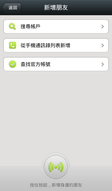 WeChat 5.0版本使用者介面優化後,讓使用上更直覺、更簡便,分成「聊天」、「通訊錄」、「發現」、「我的設定」等四大介面:其中嶄新的「Favorite Message我的收藏」功能,長按文字、語音、照片或是地理位置即可收藏,提供1.0GB容量供使用者珍藏每個感動時刻,或作為個人記事或工作商用的語音提醒秘書,讓生活更智慧。更優化、掃描速度更進步的「掃描QR code」功能,可以更快速啟動並進行掃描,加入好友、官方帳號與進入網頁版,讓WeCaht操作使用變得超輕鬆!