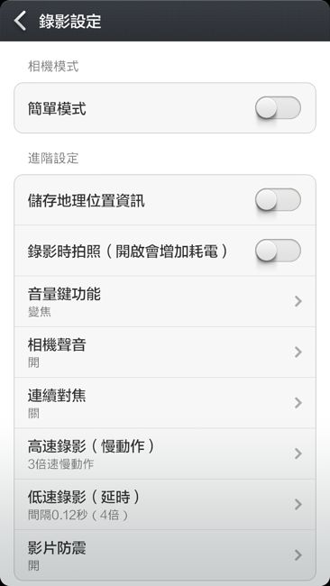 首先我們必須先將錄影功能從簡單模式切換到專家模式後,就會從下方選項中看見”低速錄影”的選項。