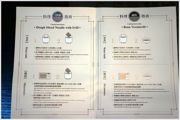 ▲料理方式可水煮、微波,刀削麵需放入水中煮熟,細粉則只需熱水泡軟即可!