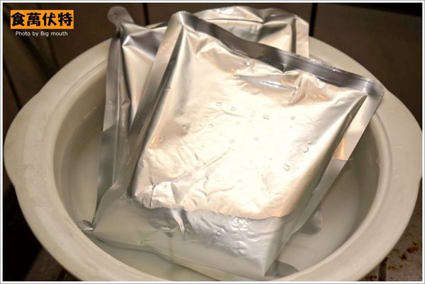 ▲首先將料理包水煮加熱8~10分鐘,實際水煮沸後放入會停止沸騰,等到再次沸騰時就差不多好了。(因為這已經是熟食,我覺得也可以在冷水開始加熱時就一起放入,等沸騰也同樣道理)