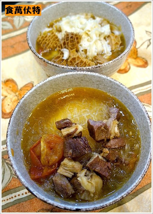 ▲使用細粉搭配讓細粉吸滿湯汁一起品嘗超讚! 牛肉選自紐、澳進口,選取牛腱部位做料理,肉塊份量也很有誠意,口感部分適中,不會有乾柴或太硬的NG狀況,很OK!