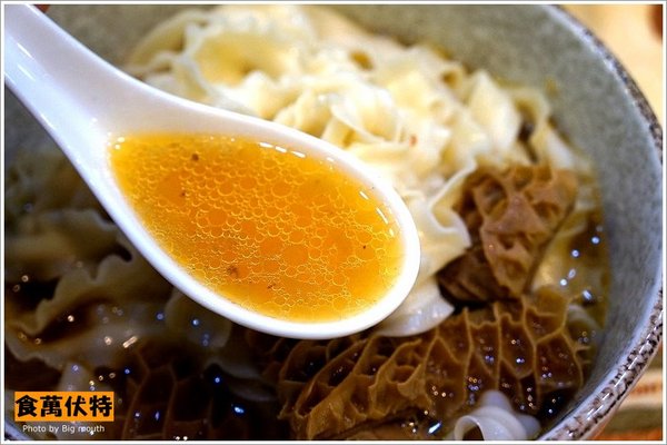 沒 有加味精與輕口味的牛骨湯頭大口曾經在外吃過幾次,的確就是這樣,或許是因為市面上太多的牛肉麵口味都含有味精,已經將我們的味覺養壞,因此剛開始吃到 這樣不含味精的湯頭都會有點不習慣,甚至覺得口味不夠重或覺得湯頭不構濃郁,但多喝幾口多吃幾次你就會發現這樣才是真正順口美味的湯底,尤其是在你吃完的 半小時內那份口中的負擔感,相比起來會很快感受到它們的差異,另外他們的湯頭除了稍帶香醇的牛骨味外,也有以蔬果熬出的清甜滋味(帶點小小辣),的確很不 錯!
