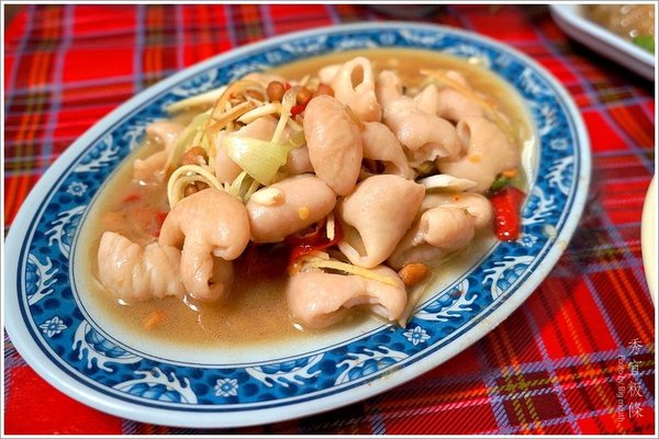 ▲酸溜溜的薑絲炒大腸是最道地美味!
