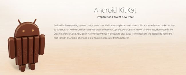 這項由Google Android與Chrome事業部門主管Sundar Pichai透過Google+宣布的消息,新版本Android 4.4作業系統將以KitKat為新的代號。