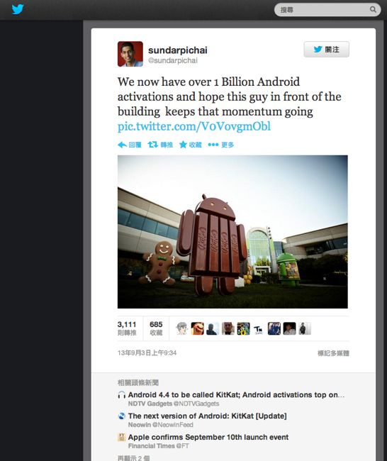 就在9/4凌晨,Android 確認推出4.4 代號KitKat版本!