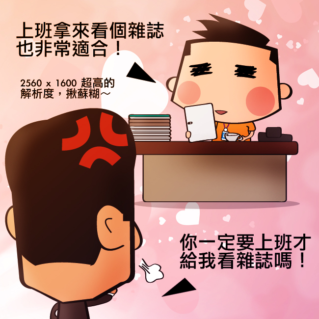 假如說拿 Note 3 和 Note 10.1 來比較的話,我覺得就像游泳池一樣,大的泳池你體驗的又更不同了(好奇怪的比喻),因為像是看雜誌、畫圖、工作,Note 10.1 使用起來就很舒服呢!