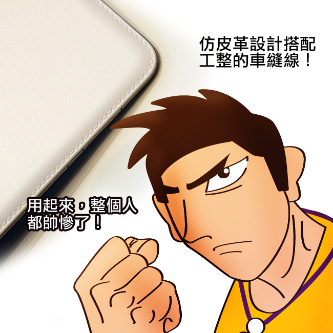 背面和 Note 3 一樣採仿皮革設計搭配工整的車縫線,質感大提昇。