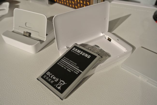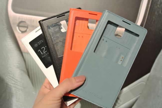 除了Gear 以外,現場也有許多針對Note 3所推出的周邊配件,例如皮革翻頁式皮套(建議售價: NT$1,990,10月初陸續供貨)、背後有著充電功能的S View透視感應皮套(建議售價: NT$2,190,10月初陸續供貨)、