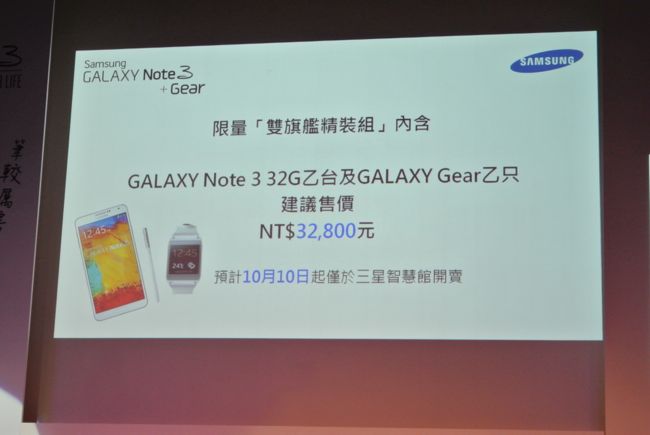 這次三星推出了Galaxy Note 3 + Galaxy Gear 組合包,10/10起三星智慧館開賣,建議售價 NT$32,800。