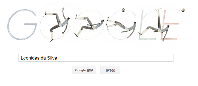 每次在看足球電影或是足球卡通時,通常最強的絕招就是 倒掛金鉤(Bicycle Kick),但卻很少人知道這大絕招是誰發明的,只是看到巴西前球王比利(Pele)常常會有這樣的精彩動作。今天的Google Doodle出現了這個倒掛金鉤的圖像,是的,這就是紀念倒掛金鉤發明人 巴西足球員 Leonidas da Silva 的100歲冥誕。