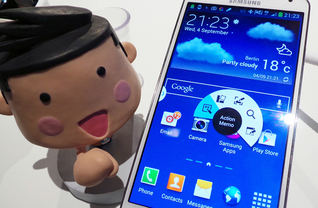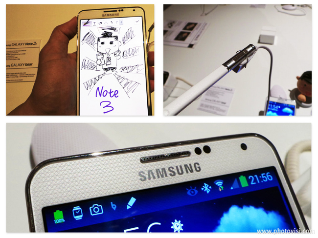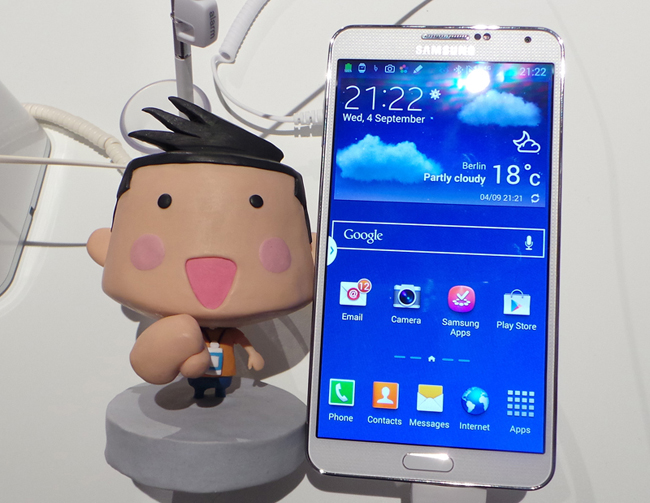 跟 GALAXY Note 2 不一樣的設計是更為方正了些,另外像是驚人的 3GB RAM、特殊皮革縫線設計、5.7 吋Full HD Super AMOLED螢幕、2.3GHz四核心處理器、3200mAh…等,這些都是很可怕的規格啊!