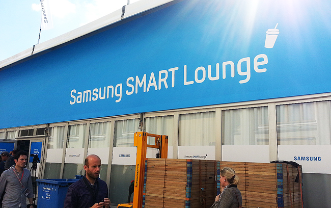 隔天開展後,咱們就從這邊進去,這裡有著名的 Samsung 旗海。