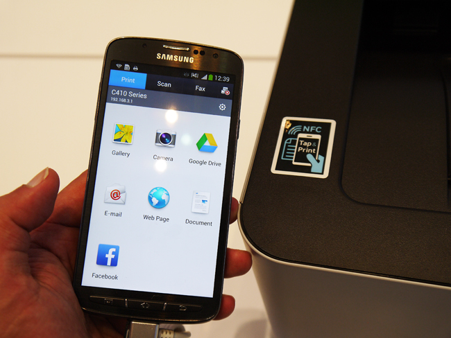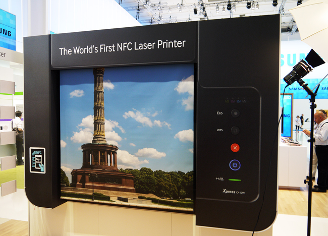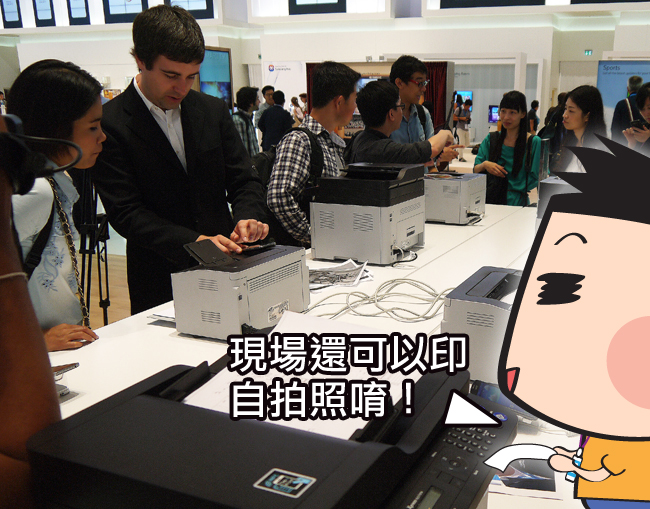 另外發現了這個印表機展示區。世界第一台 NFC 雷射印表機!?