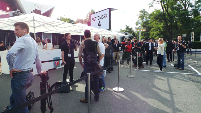 到了發表會當天,全球的媒體都就位了,還要一起排隊進場。