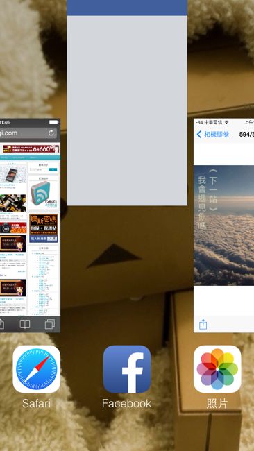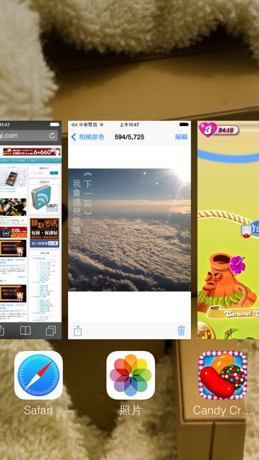 但這次在iOS7中,雖然也是同樣快速按兩下Home鍵來開啓多工程式的畫面。但這次畫面中不單單只有正在進行的應用程式icon,還有著該應用程式離開時的畫面,也幫助使用者提醒上次地進行進度。