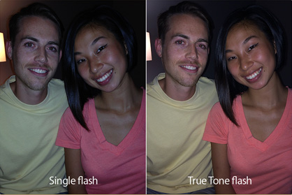 這個補光燈是讓Kisplay感受到Apple最用心的地方,他使用白光LED與暖光LED互相搭配,可組合出1000種以上的色溫組合,這樣有什麼好處呢?當我們使用補光燈時,一定會碰到環境光線與補光燈光線色溫不同的情況,如果環境是暖色光,但你使用白色LED光直打,就會造成被照射物體與環境出現兩種不同的顏色。關於控制閃光燈色溫的部分,大家可參考閃燈色溫控制這篇文章。