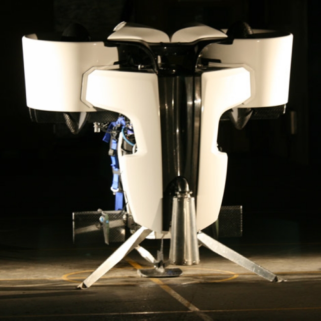 Martin Jetpack 最新的噴氣背包型號為P12,機身以碳纖維打造,具備極輕量化特點,使用汽油推動雙渦輪風扇,能垂直起降與飛行。