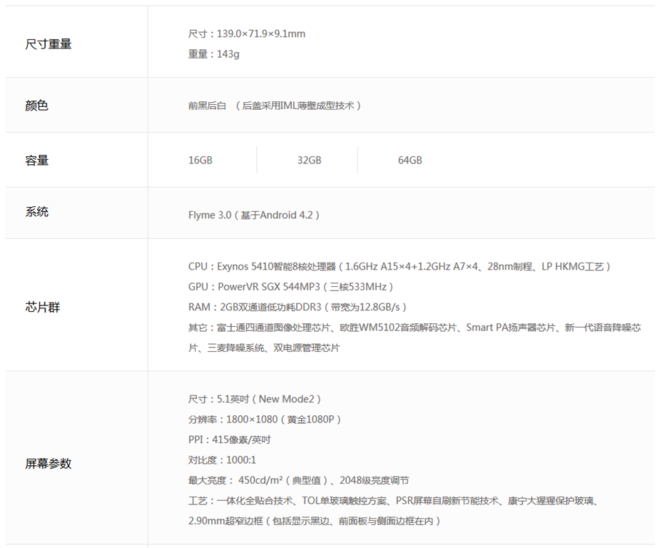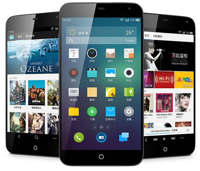系統部分使用基於Android 4.2所設計的Flyme 3.0,使用扁平化設計,看起來與iOS 7介面很相似。另外多了下拉與側滑目錄,讓大手機操作起來更方便。