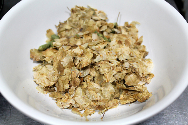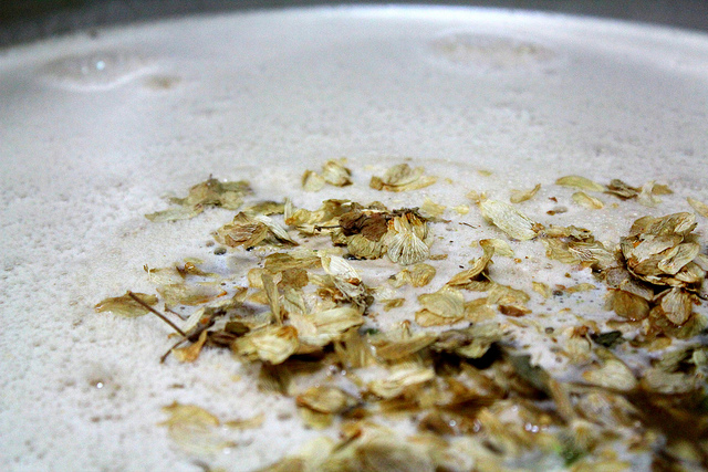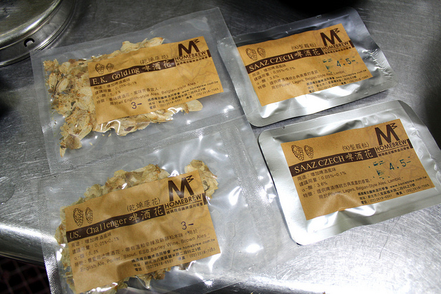 在過濾掉麥殼後,我們要加入啤酒花調味,啤酒花在本草綱目中稱作為蛇麻花,說是有清熱利尿的功效,其實它就是啤酒苦味的主要來源,也讓啤酒有著特殊香氣,更是天然防腐功能和讓泡沫持久。添加量極少,只要麥汁的0.1~0.5%的重量即可,不同的啤酒配方使用的啤酒花種類也不相同。