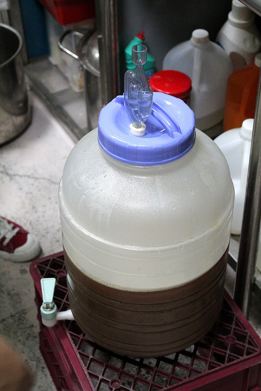 所有動作到這裡已經告個段落,麥汁、啤酒花、酵母就這樣和樂融融的在發酵桶裡一起生活,就等十天後分裝到玻璃瓶,再一個月時間熟成就可以享用。相較於自家烘焙咖啡的紅海廝殺,看來媽媽嘴的大丙叔叔在自釀啤酒這個廣大藍海市場已經取得先機!