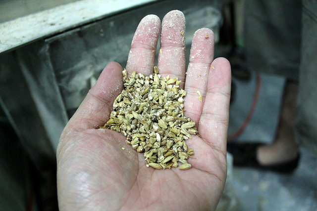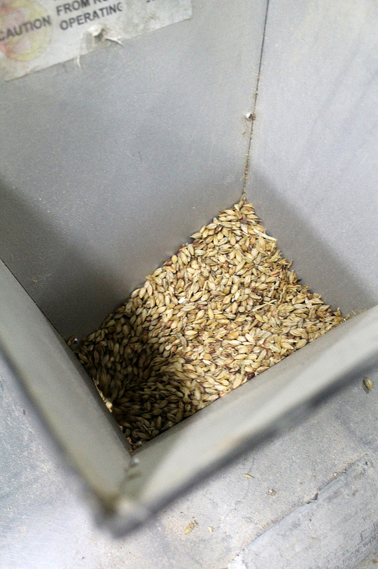 利用碾磨機將麥芽碾碎,以利糖化現象進行。