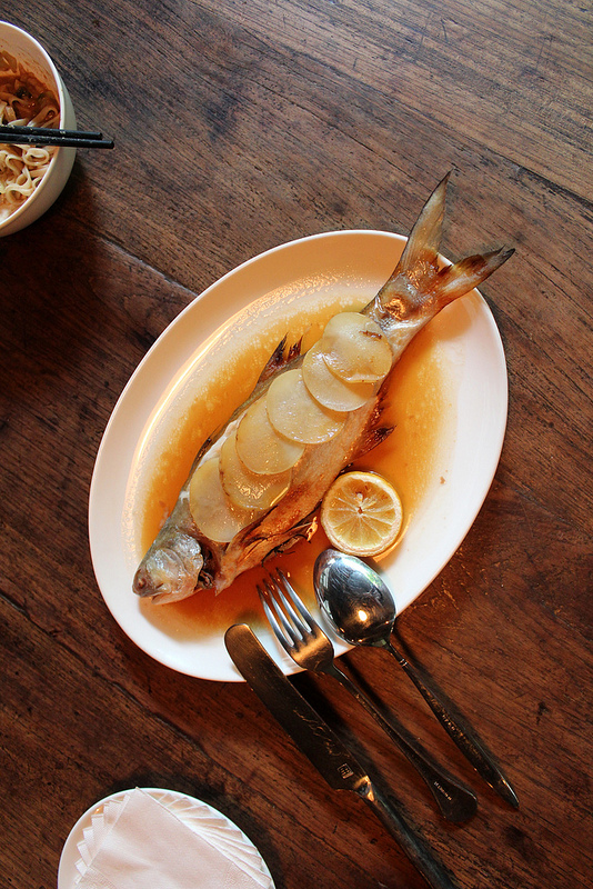 老婆大人愛吃魚,這蒸烤野生海魚是她欽點的~上面鋪了些脆馬鈴薯片可是有妙用的唷!因為服務生會幫忙先把魚給去骨,去完魚骨之後再把薯片給鋪回去,整條魚又完好如初,不會有開膛破肚的感覺。