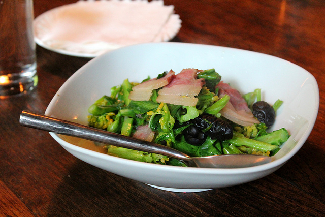 在決定要吃什麼之前就會先上幾樣開胃小菜,全麥麵包佐紅酒醋和橄欖油是這裡的特色,橄欖油也同時使用在店裡的料理上。