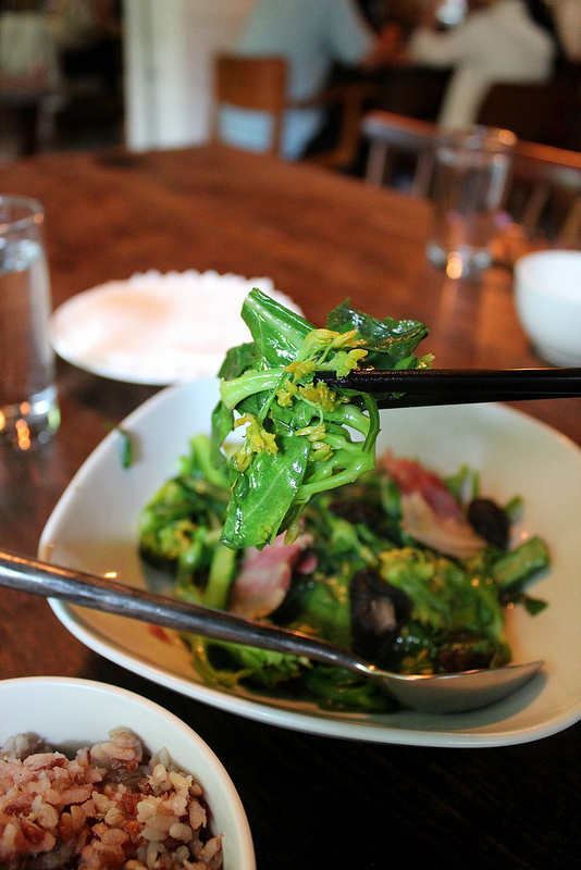 第一道菜~咸肉芥蘭花,鹹肉只是點綴,芥蘭花炒的非常爽脆,四知堂的菜餚幾乎都是走健康清爽路線,就算是大魚大肉也不會覺得油膩。