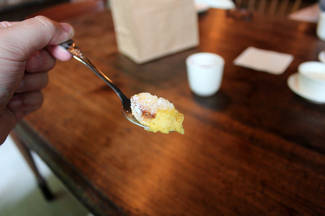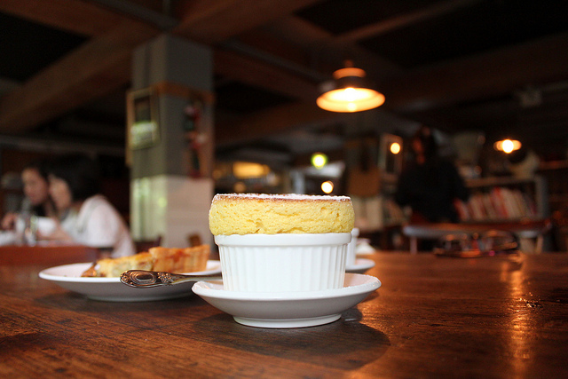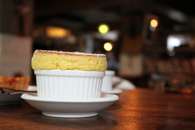 餐後甜點有現烤的舒芙蕾和白葡萄派可以選擇,舒芙蕾就是法文的"Soufflé "有吹氣膨脹的意思,主要的材料是使用蛋黃糊、蛋白霜和糖,烤起來上層蓬鬆香甜、底部濕軟綿滑,簡單卻充滿心意的料理。