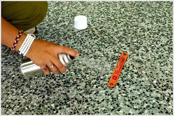 ▲首先我們必須使用酒精擦拭皮料,讓他軟化後才可以進行打上圖案(拓圖)的動作!