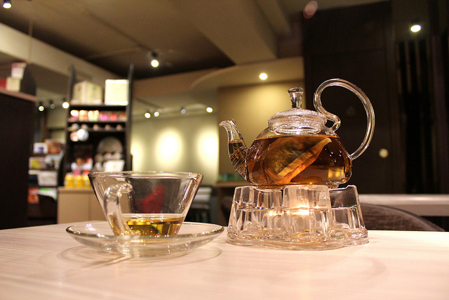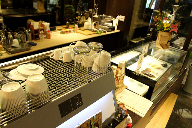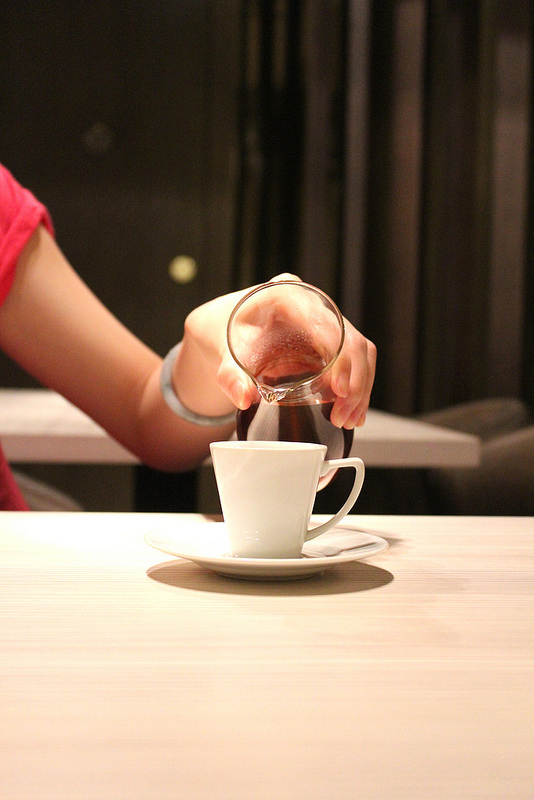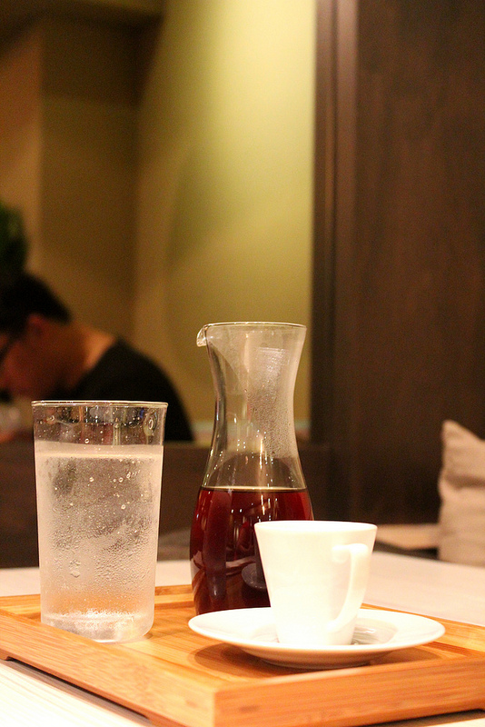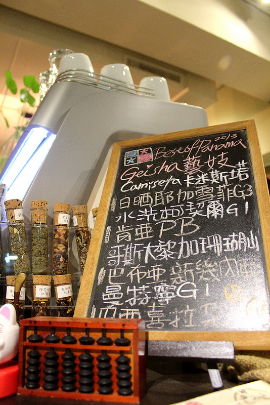 目前在魚缸咖啡店內所使用的咖啡豆也都是自己烘焙而成,酸甜香氣十足的淺烘焙單品咖啡還頗受好評,不乏來自巴拿馬BOP競標豆和Ninety Plus的微批次精品豆,在蘆洲地區來說,已經是相當具有誠意的咖啡館。以竹盤盛裝的玻璃壺與瓷杯,旁邊那杯可不是普通冰水唷,而是充滿氣泡的冰涼氣泡水,在品嚐咖啡之前先喝一口,消除吃過甜點後的殘留味道,讓咖啡風味更加明顯突出。