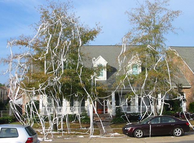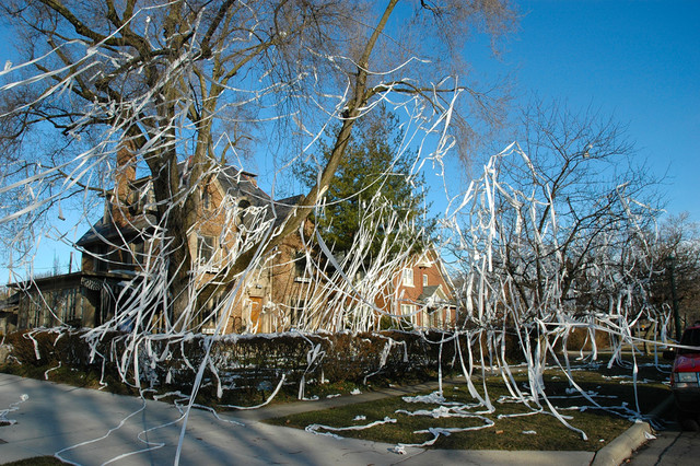 我甚至還在網路上看到How to Toilet Paper a House the right way 怎麼馬上紙捲庭院的指南: