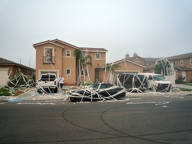 第二名:蛋洗房子和車子 (刮鬍子的泡沫也可以達到幾乎相同的效果,所以都有人做,在此並列)