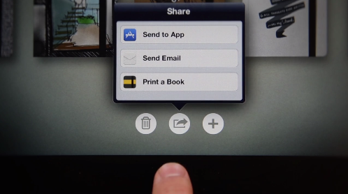 從現在開始,只要使用者將iPad上的FiftyThree更新到新版本,就可以發現在分享那邊多了一個”Print a Book”的選項。