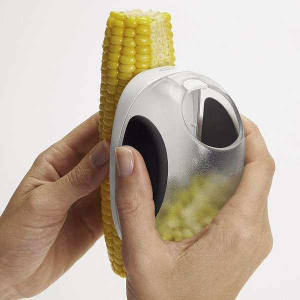 科技控看到這個與滑鼠極為相似的玩意一定備感親切,這是專門設計廚房用具的美國 OXO 公司所推出的 Good Grips Corn Stripper,功能是讓使用者削下玉米粒來料理食用,不必吃力的動手以人工方式削除,是一個便利又小巧的廚房小幫手。