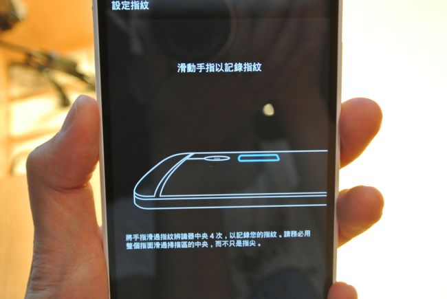 倘若指紋辨識無法感應,還能利用設定時所輸入的密碼繼執行動作。而指紋辨識輸入也是有個小技巧,使用者雖然只需要輕輕的,但必須是準確的由上往下滑過辨識器後方能感應。