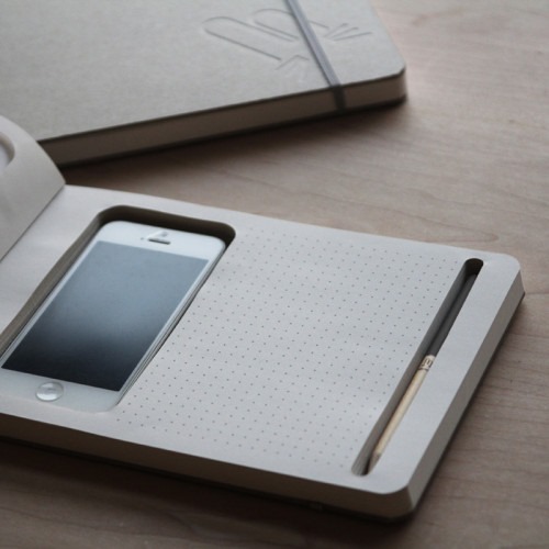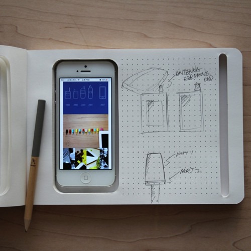 台灣在地的設計師 KB 設計了這個有趣的東西,讓行動裝置和書本結合在一起囉!概念就是直接把手機放進筆記本裡,有什麼 idea 可以立馬畫下來,另外附上一支鉛筆,一端是書寫用的另一端是有漆上導電漆的設計,數位和紙本都可以記錄,是不是相當有想法的設計呢?