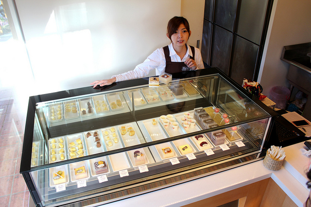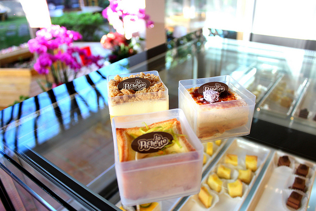 其實這間「La Pochette」小口袋甜品是九月底才開幕不久的甜點專賣店,位於新北市新莊區靠近副都心重劃區的邊緣,由曾任職於喜來登飯店的黃森崌負責甜點製作,而店務經營和行銷管理則由陳筱瑩店長負責,目前沒有內用座位,但是可以坐在庭園區享受點心,未來則希望能以外帶及宅配銷售為主力。