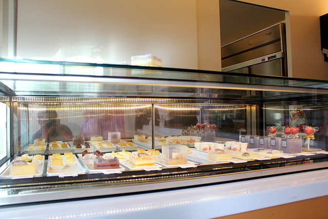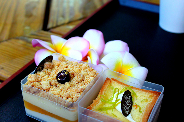 跟筱瑩店長聊了一下關於產品定位的發想,她說,傳統的蛋糕通常都是整個圓形再做切片,有時也吃不完那麼多,所以特別選擇方型做為店內甜點的容器,也方便以後在宅配時的包裝裝箱,且考慮到地區性的因素,這些精緻而有創意的甜點的售價都控制在百元以下。