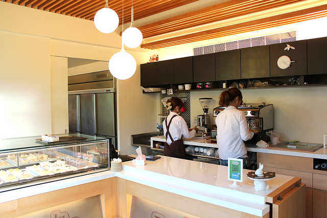 女生負責外場招呼客人,男生們都在廚房裡努力的製作甜點供應前場需求。