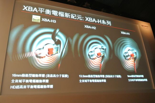 另一個主打系列,耳道式XBA-H系列則是主推最新平衡電樞驅動單體(BA)技術,創造豐沛音效與渾厚重低音。XBA-H系列共推出三款,其中XBA-H3不僅擁有獨特的Hybrid 三單體設計,並藉由一個16mm 液晶高分子振膜的動態型驅動單體,加上全音域、HD超高音兩個平衡電樞驅動單體,能夠真實再生Hi-Res高解析音質。耳機外型方面也使用配戴更方便的耳掛式設計,讓使用者毫無負擔的享受聆聽樂趣。