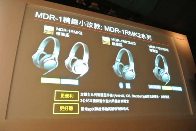 最後則是去年推出的MDR-1的改款,MDR-1與MDR-2,增加了耳機線的長度與無線傳輸技術。