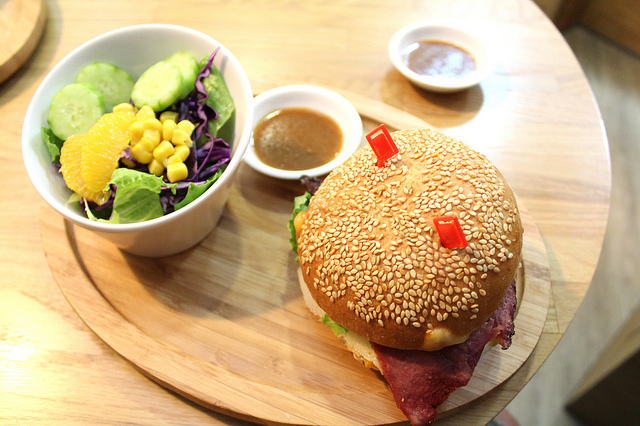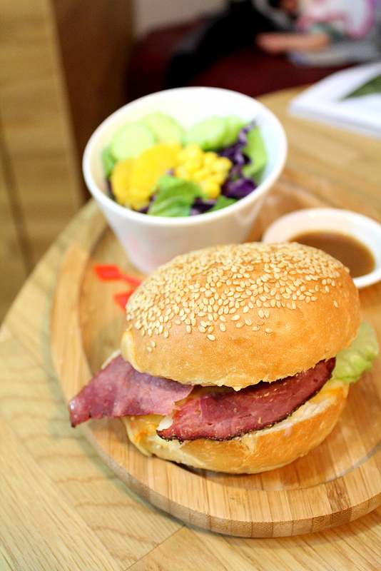 這次大叔準備從早午餐吃到下午茶,一次解決!省得又連跑兩天,哈哈~早午餐時段提供三種美味料理讓大家選擇,手工千層麵、黑胡椒火腿起士漢堡、三明治套餐,附沙拉和飲料。用料實在,連漢堡所用的麵包都是自家烘焙的唷~