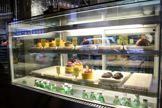 簡潔俐落採光明亮的開放式廚房,讓坐在沙發區用餐的朋友可以近距離的觀察 Robert Hope 主廚製作甜點的過程,搭配上超大台蒸烤箱在操作時發出的蒸氣聲響,彷彿是置身在美食節目拍攝現場的驚奇體驗!架上可以看到不同的威士忌與其它酒類,這些可不是純觀賞用的而已唷,以美酒搭配甜點可是羅赫伯主廚的強項~